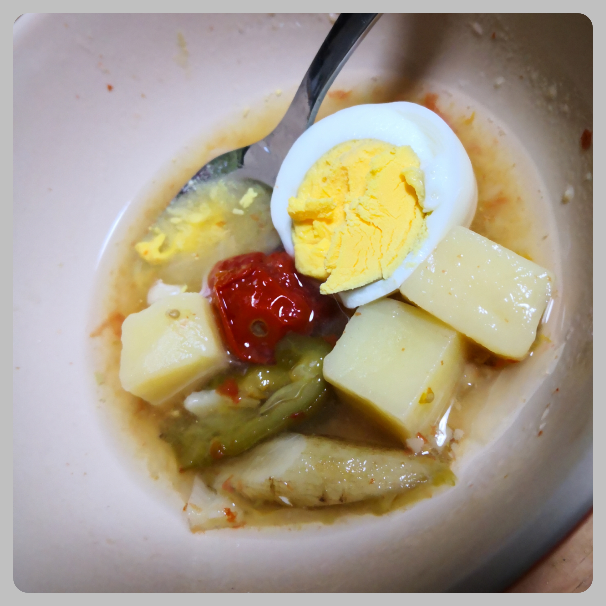 残した具入り野菜スープを