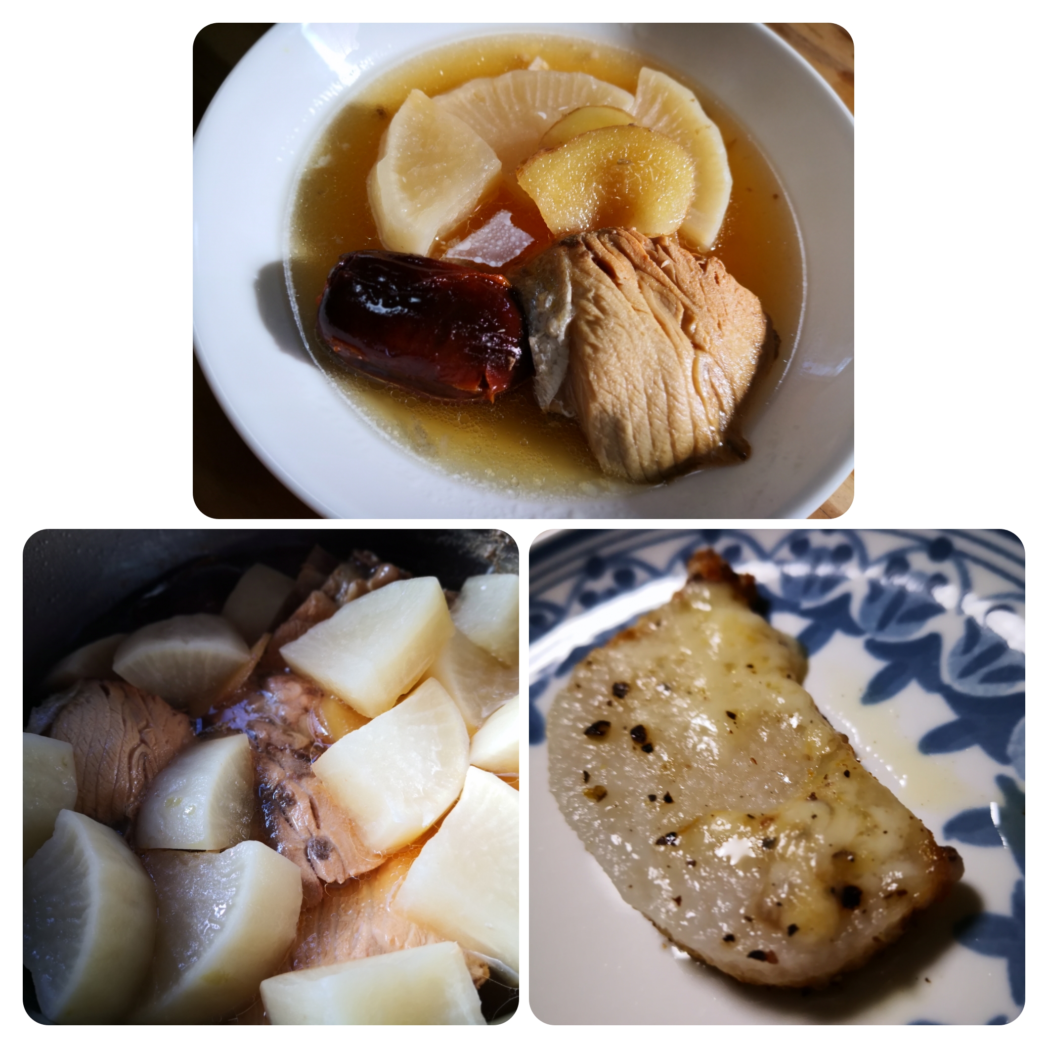 鰤のアラと大根を生姜とみりん