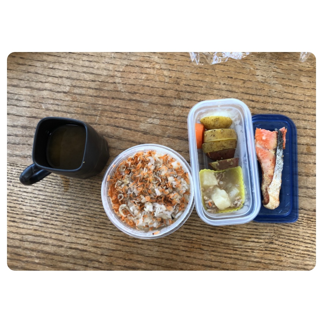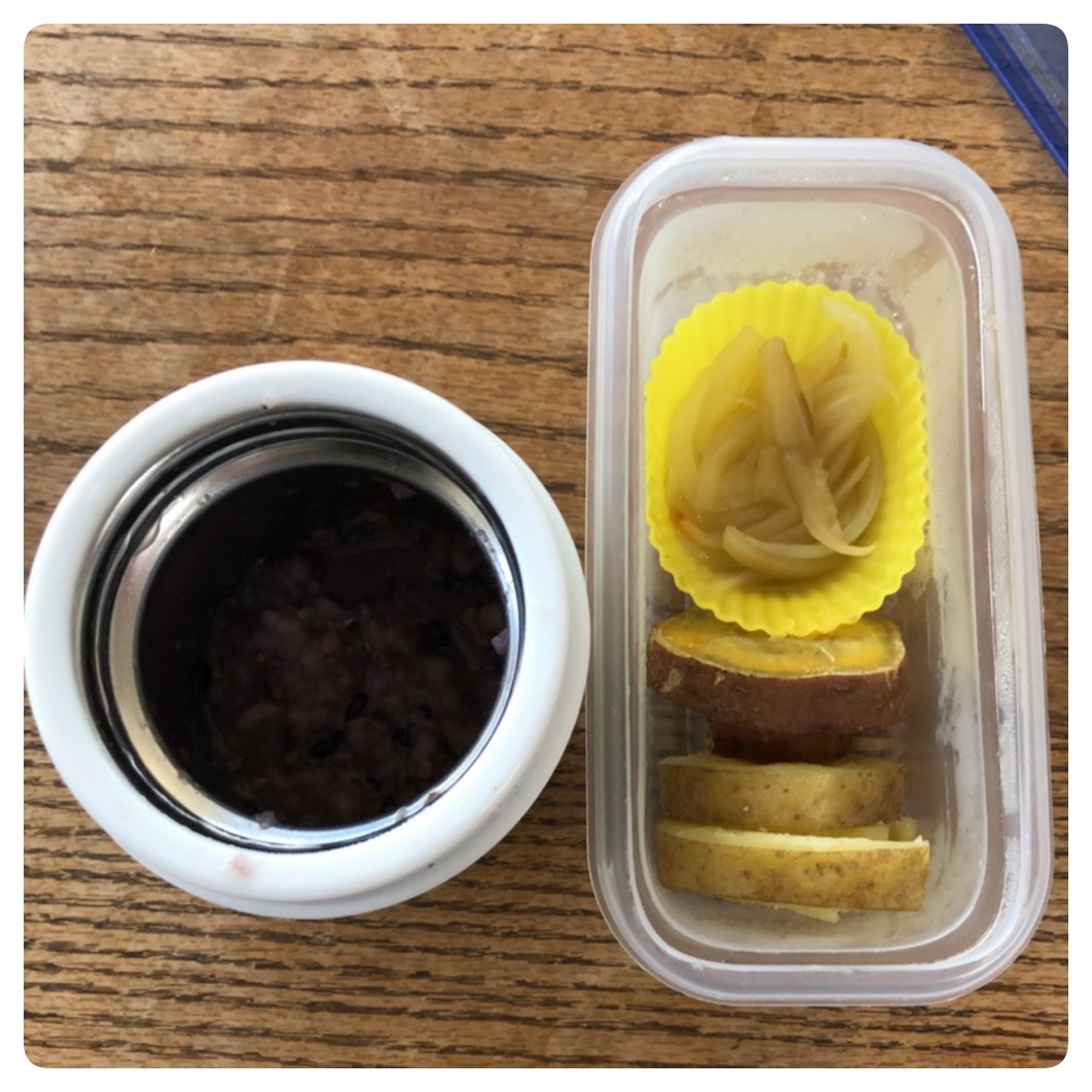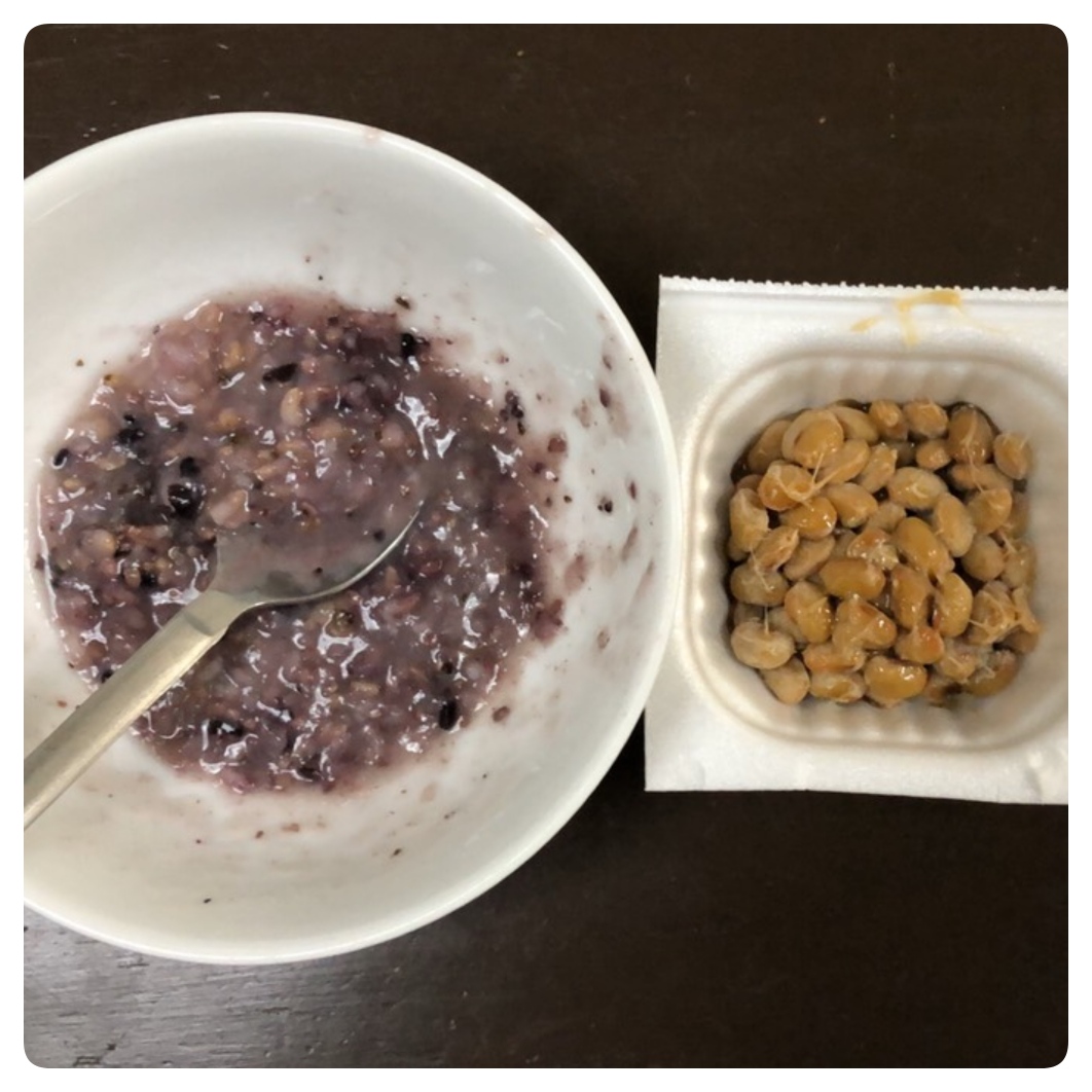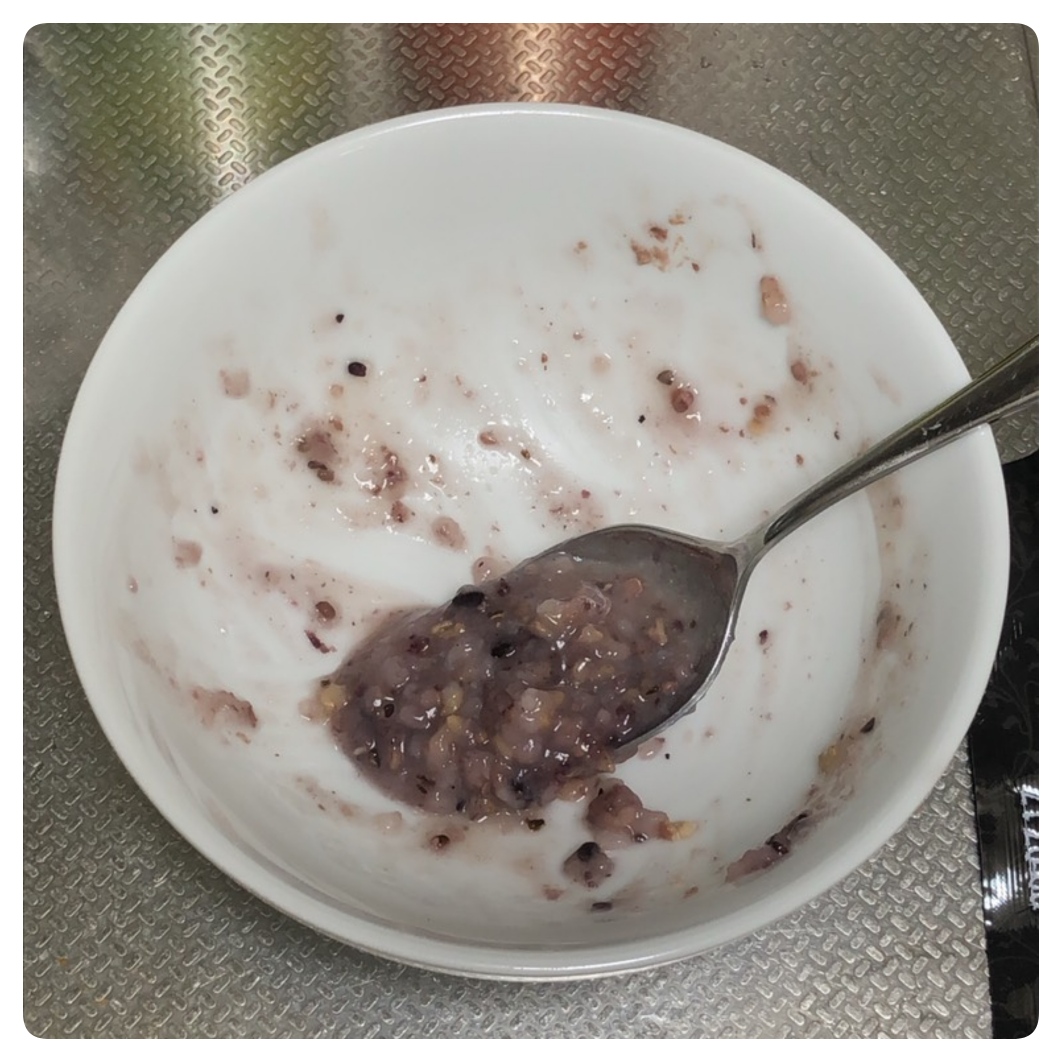 お粥1パックの朝の残り全部。
