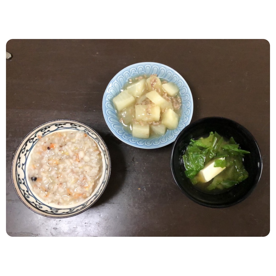 十六穀米と刻み昆布入りお粥。