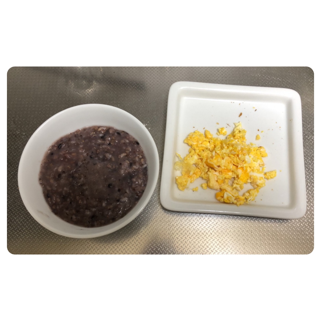 朝食はお粥を食べられるだけ。