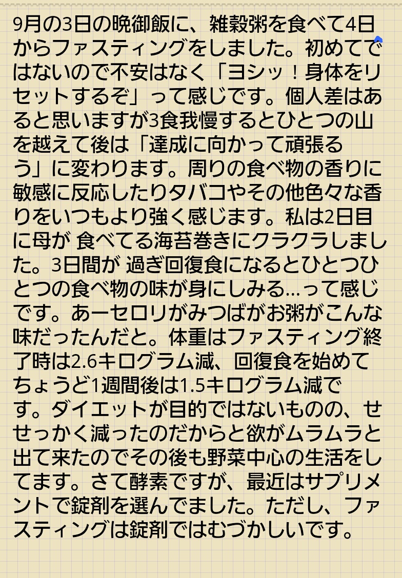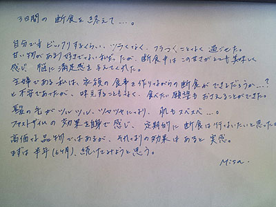 Misaさんは 私のアドバイスを参考に ご自身で初めての断食に挑まれました。