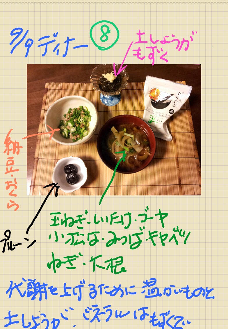 私自身、納豆、野菜豆腐などの食事のみでも