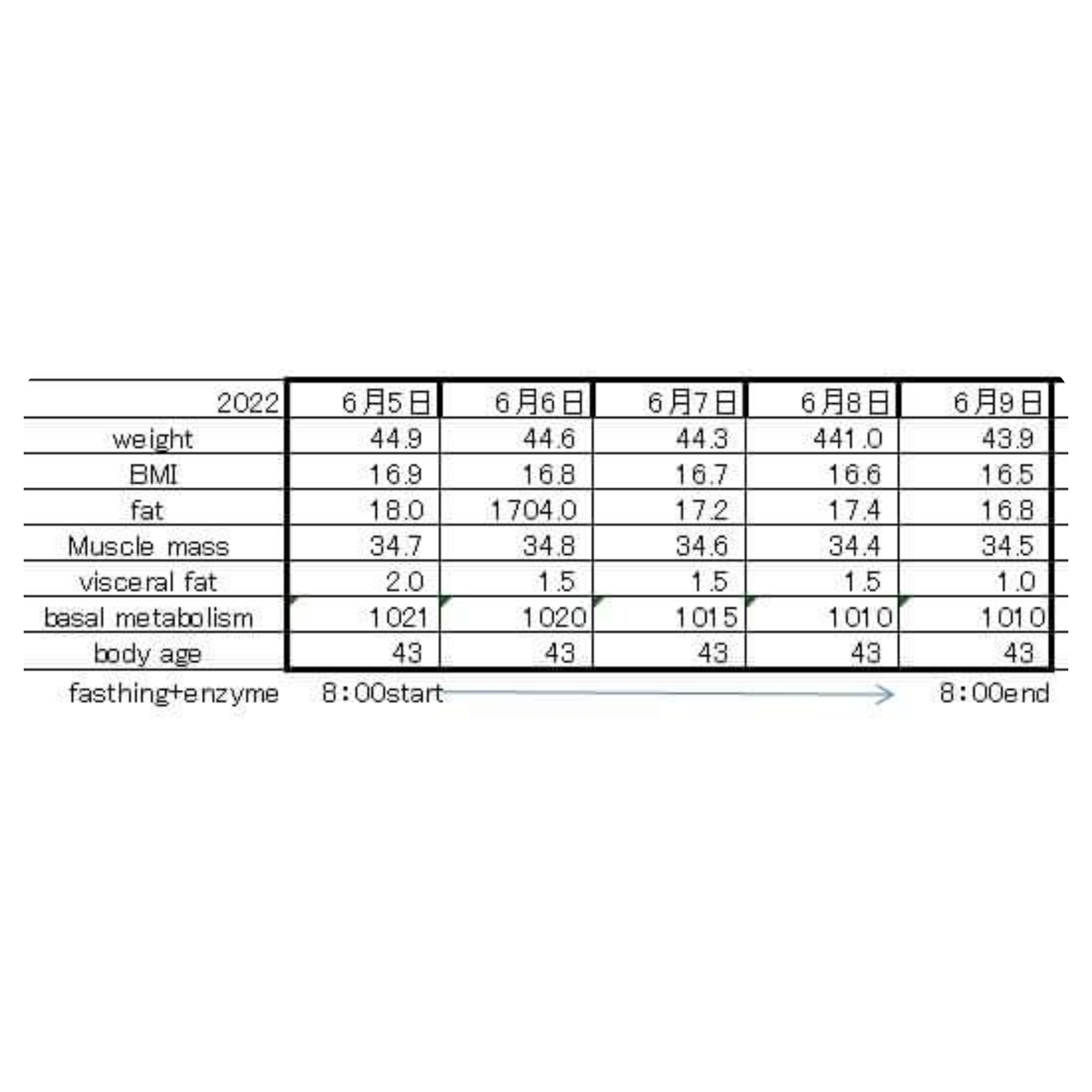 6月9日朝体重43.9kg 減らずになんとか出来た