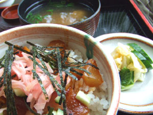 海鮮ザクザク丼 お味噌汁漬物付 500円也