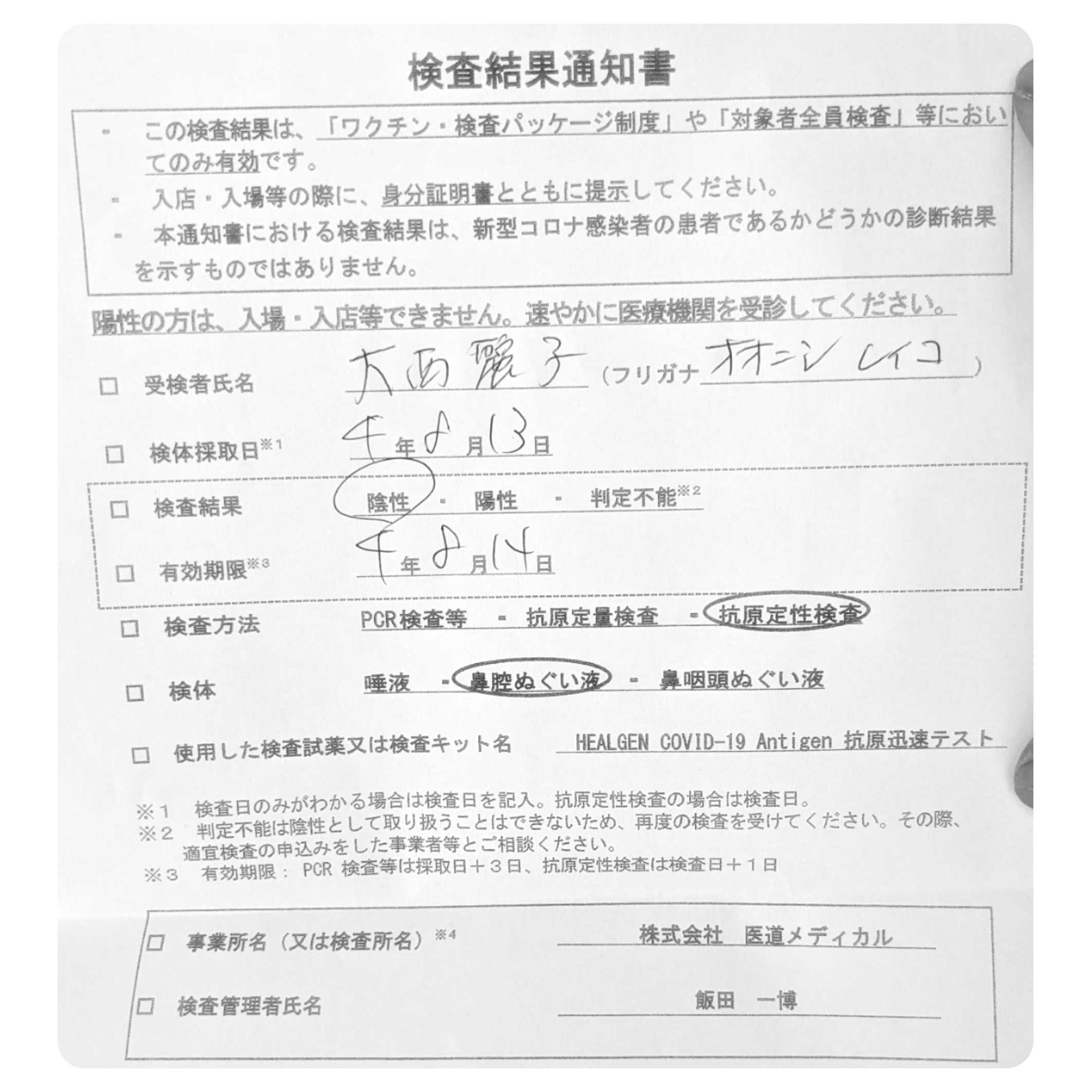 抗原定性検査→陰性!