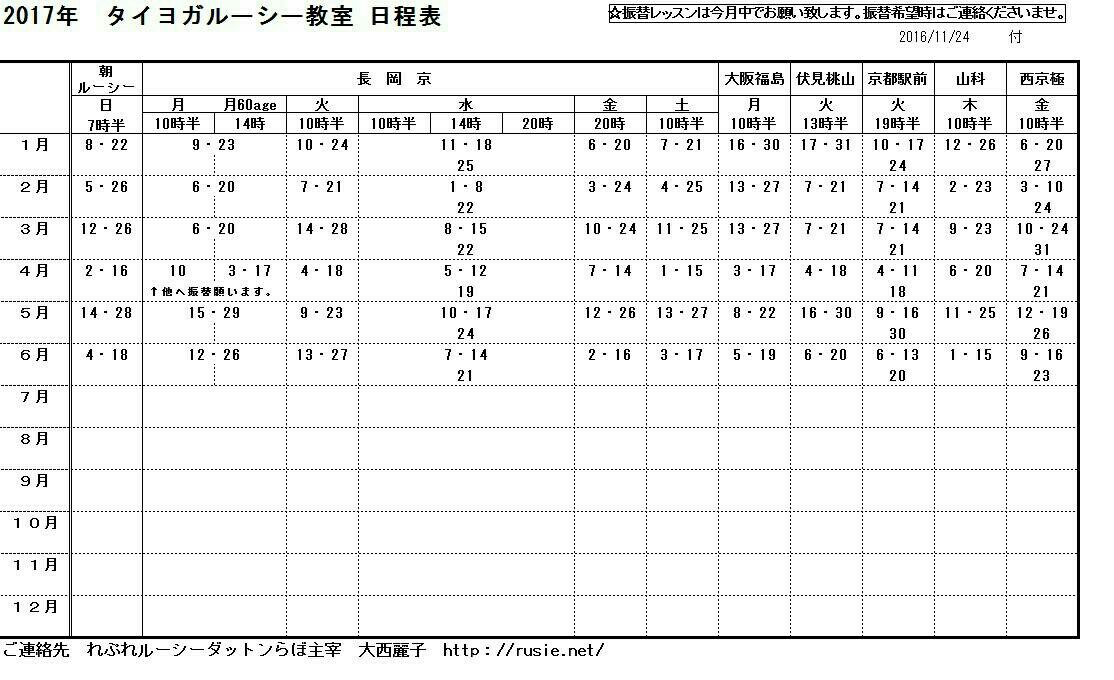 2017タイヨガルーシー日程表