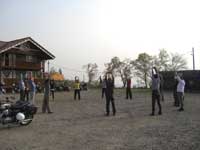 ロッジの外では バイクの出発用意。
