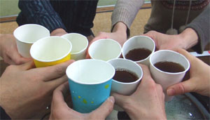 まず乾杯前に 座動作をいつも行います。