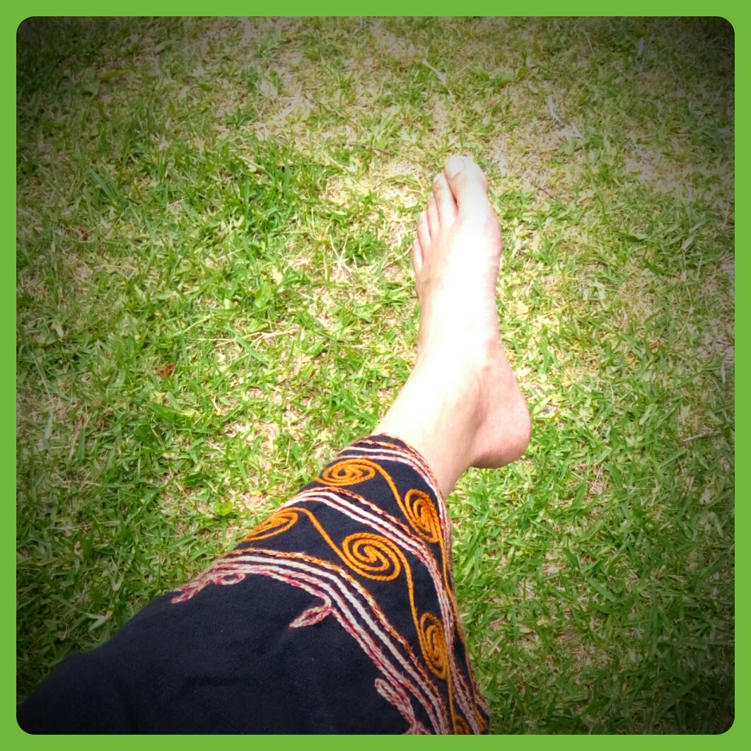 裸足で芝生