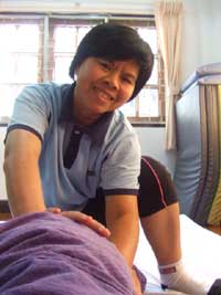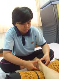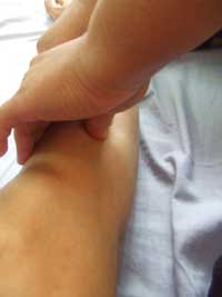 仙骨周りを親指で解して行く。