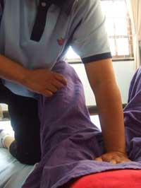 腹臥位で臀部を解す。