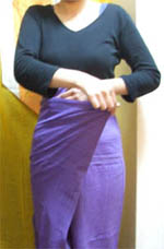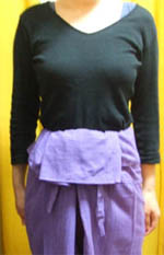 ②ウエストに添うように布を重ねます。