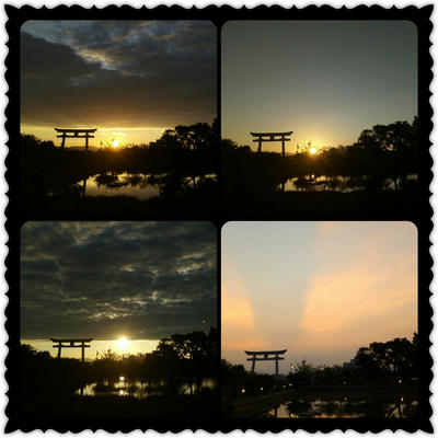 日の出の光を身体に浴び